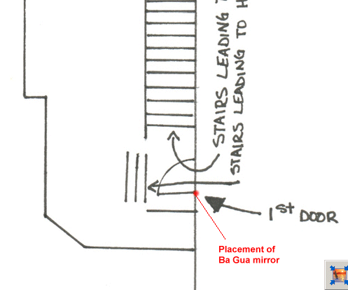 If there is a need to place a Ba Gua mirror, I have attached the location marked by a red dot.